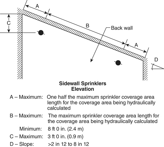 6.4.2.4 (NEW in 2025): Applies when residential sidewall sprinklers are installed under a sloped ceiling where slope > 2 in 12. Adds two permitted configurations: